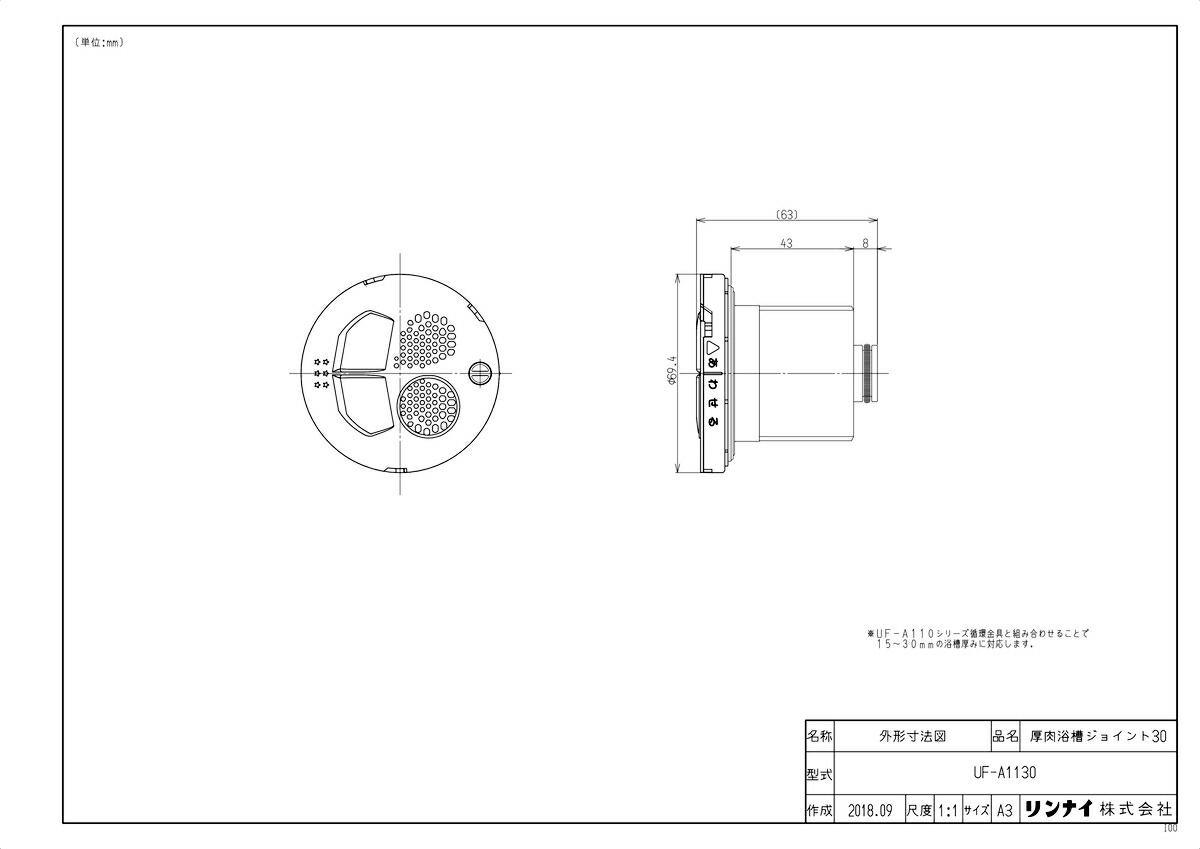 品名コード :24-1130シリーズ名 :UF-A110商品名 :厚肉浴槽ジョイント型式名 :UF-A1130重量(Kg) :0.22Kg梱包縦寸法 :385梱包横寸法 :310梱包幅寸法 :255体積(M3) :0.031M3販売開始日 :2018/12/25