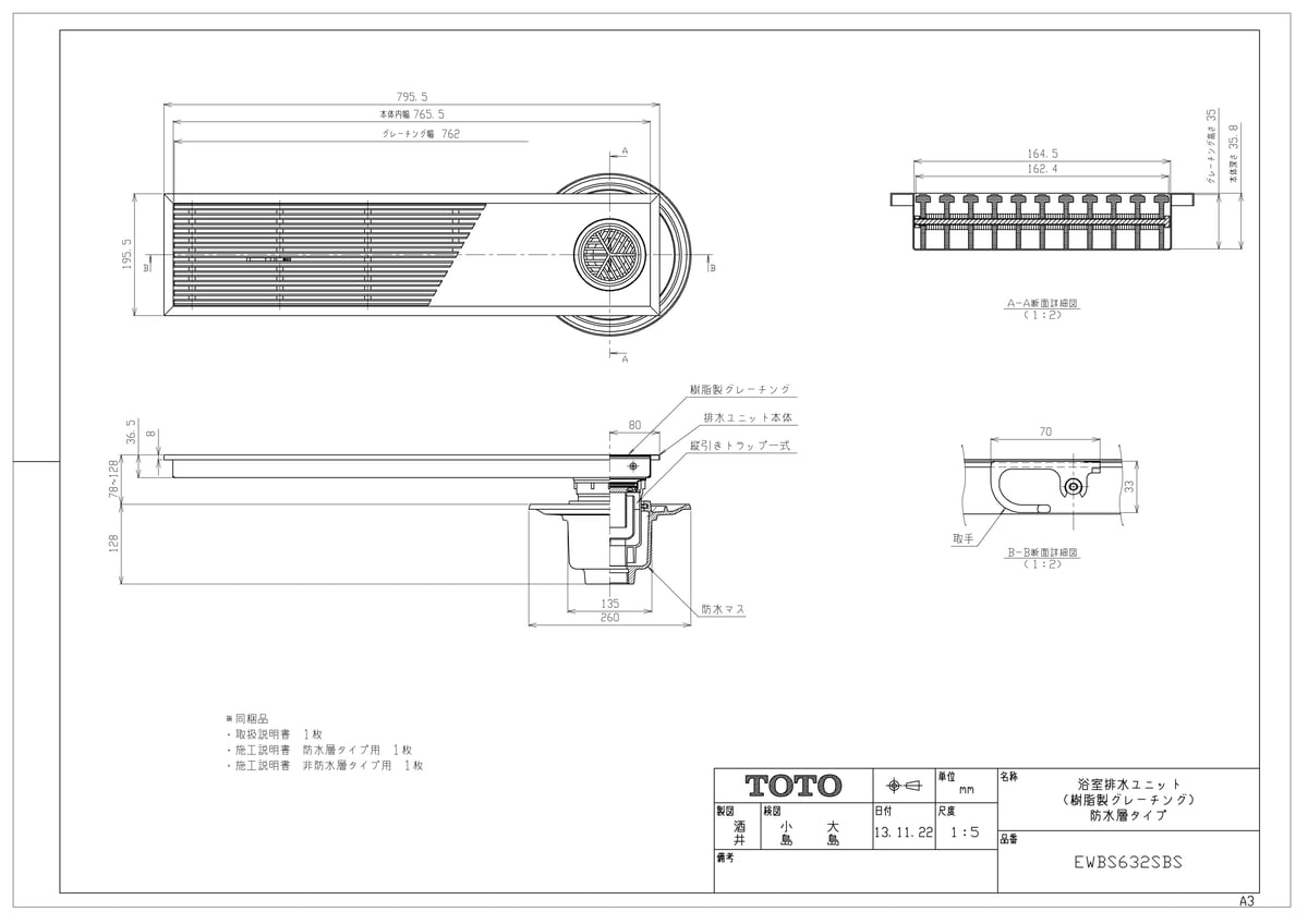 浴室排水ユニット防水・200角用