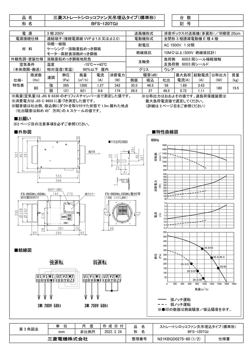 ストレートシロッコファン 天吊埋込タイプ標準形