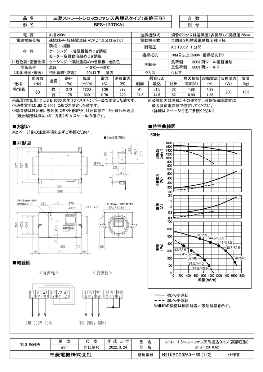 ストレートシロッコファン 天吊埋込タイプ高静圧形