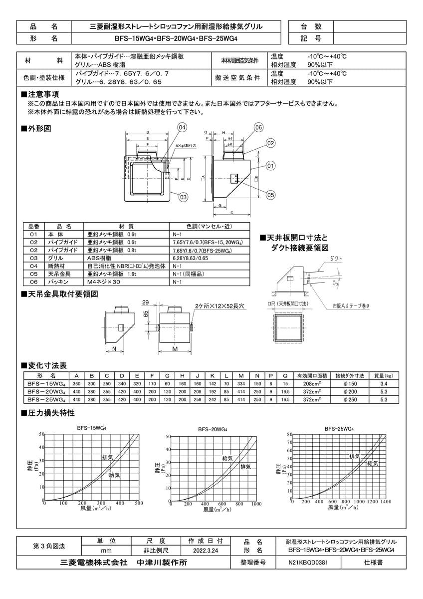 耐湿形給排気グリル
