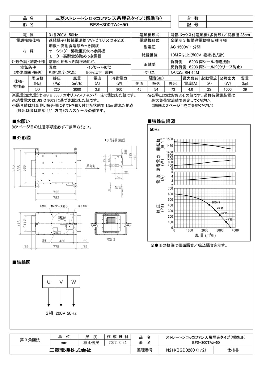 産業用送風機 ストレートシロッコファン ストレートシロッコファン 天吊埋込タイプ標準形