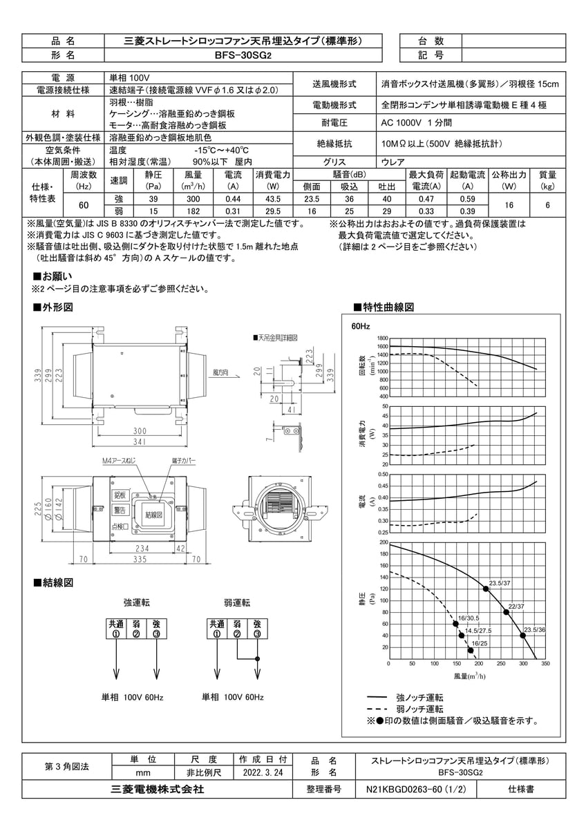ストレートシロッコファン 天吊埋込タイプ標準形