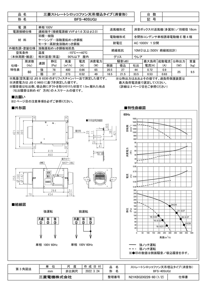 ストレートシロッコファン 天吊埋込タイプ消音形