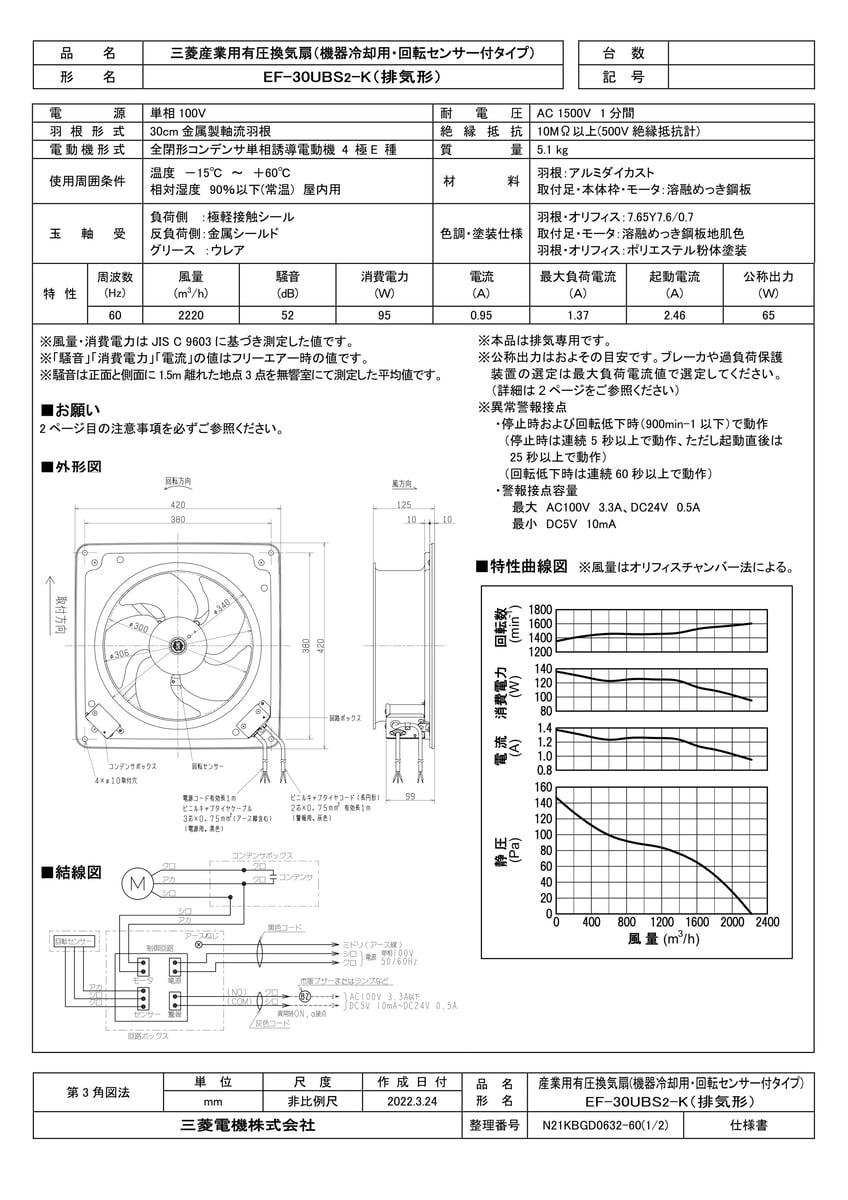 有圧換気扇 機器冷却用排気形 回転センサー付