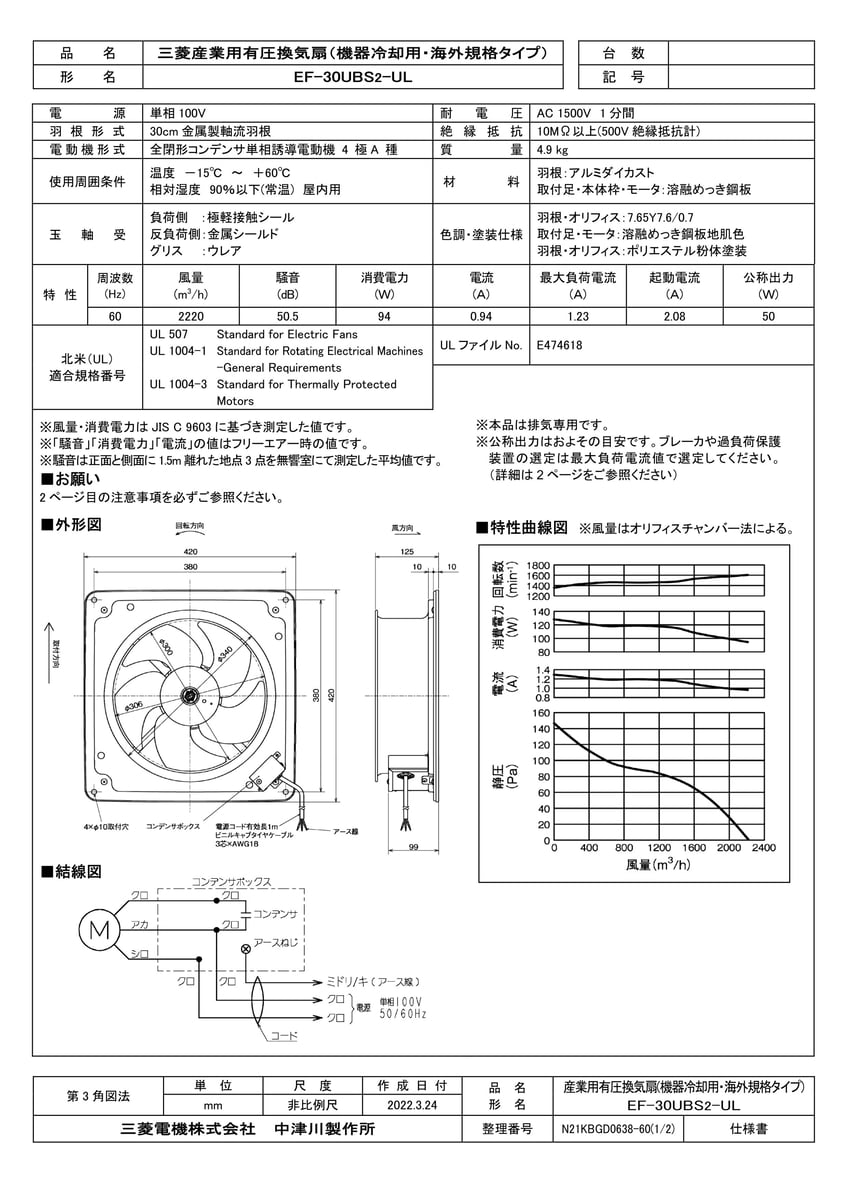 有圧換気扇 機器冷却用排気形 海外規格タイプ