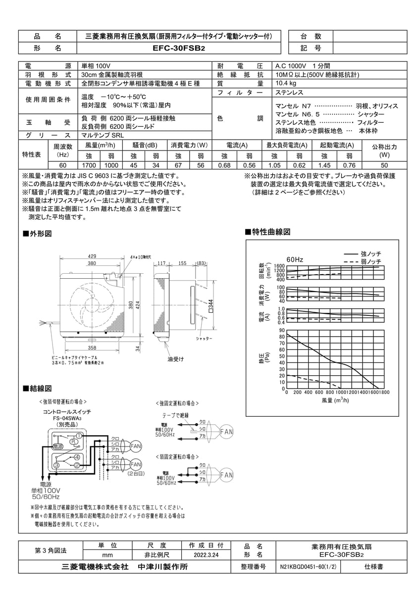 有圧換気扇 厨房用フィルター付 電動シャッター付