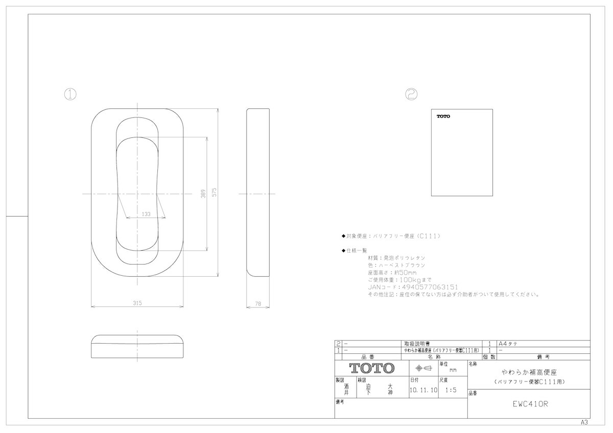 品名:やわらか補高便座 C111用