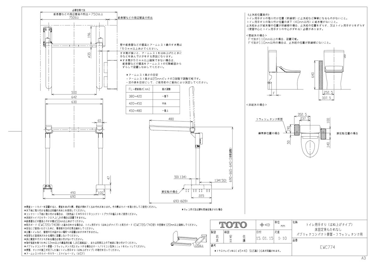 トイレ用手すり はね上げタイプ 背もたれ付 床固定タイプ
