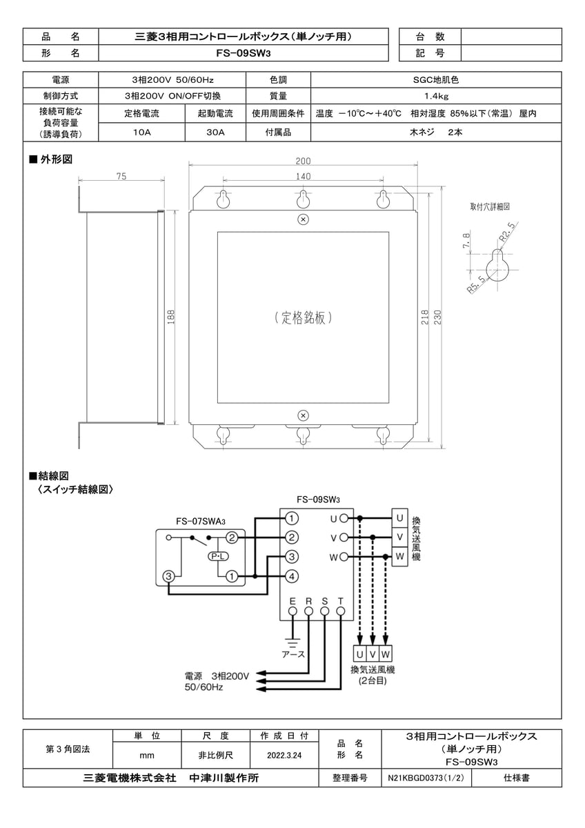 産業用送風機 その他部材 三相用コントロールボックス