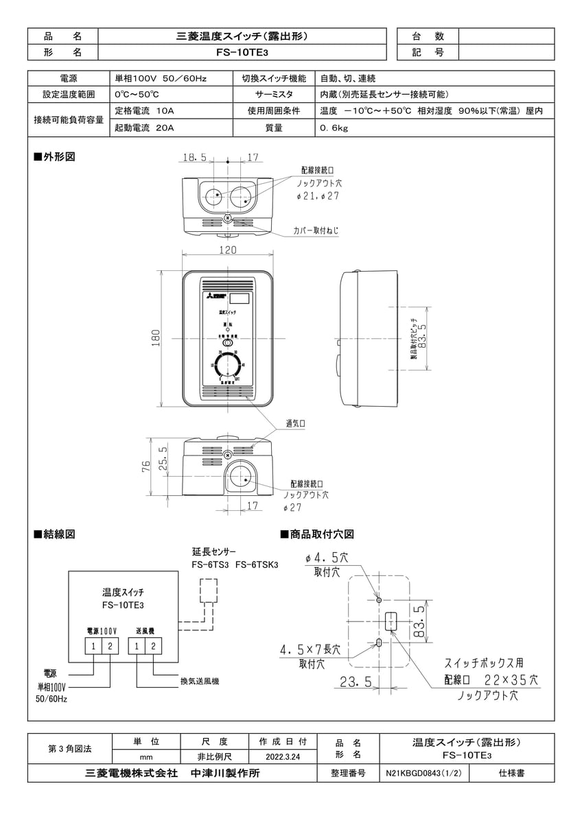 温度スイッチ 露出形