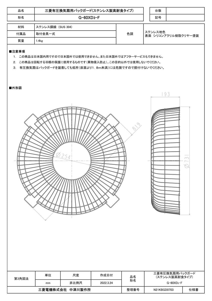 バックガード 高耐食ステンレス製