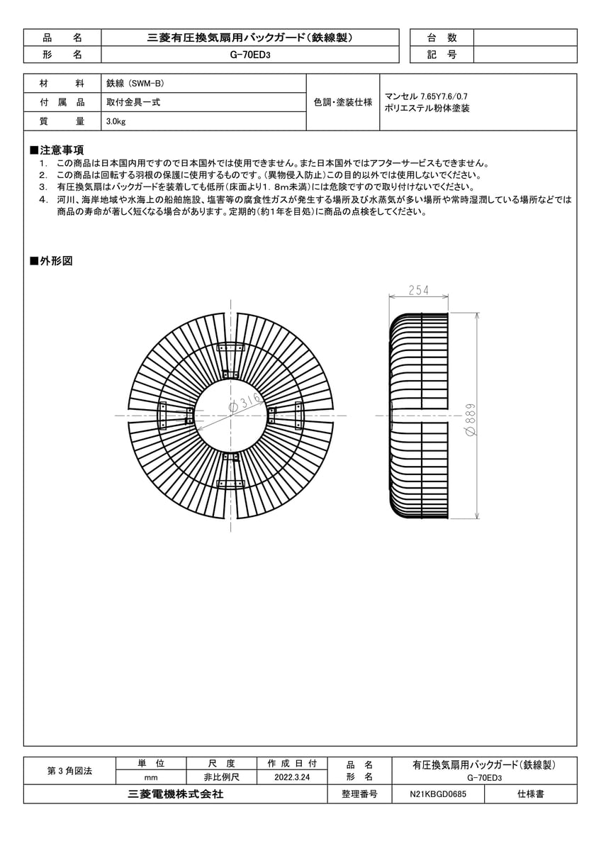 産業用送風機 有圧換気扇用部材 バックガード 鉄線製