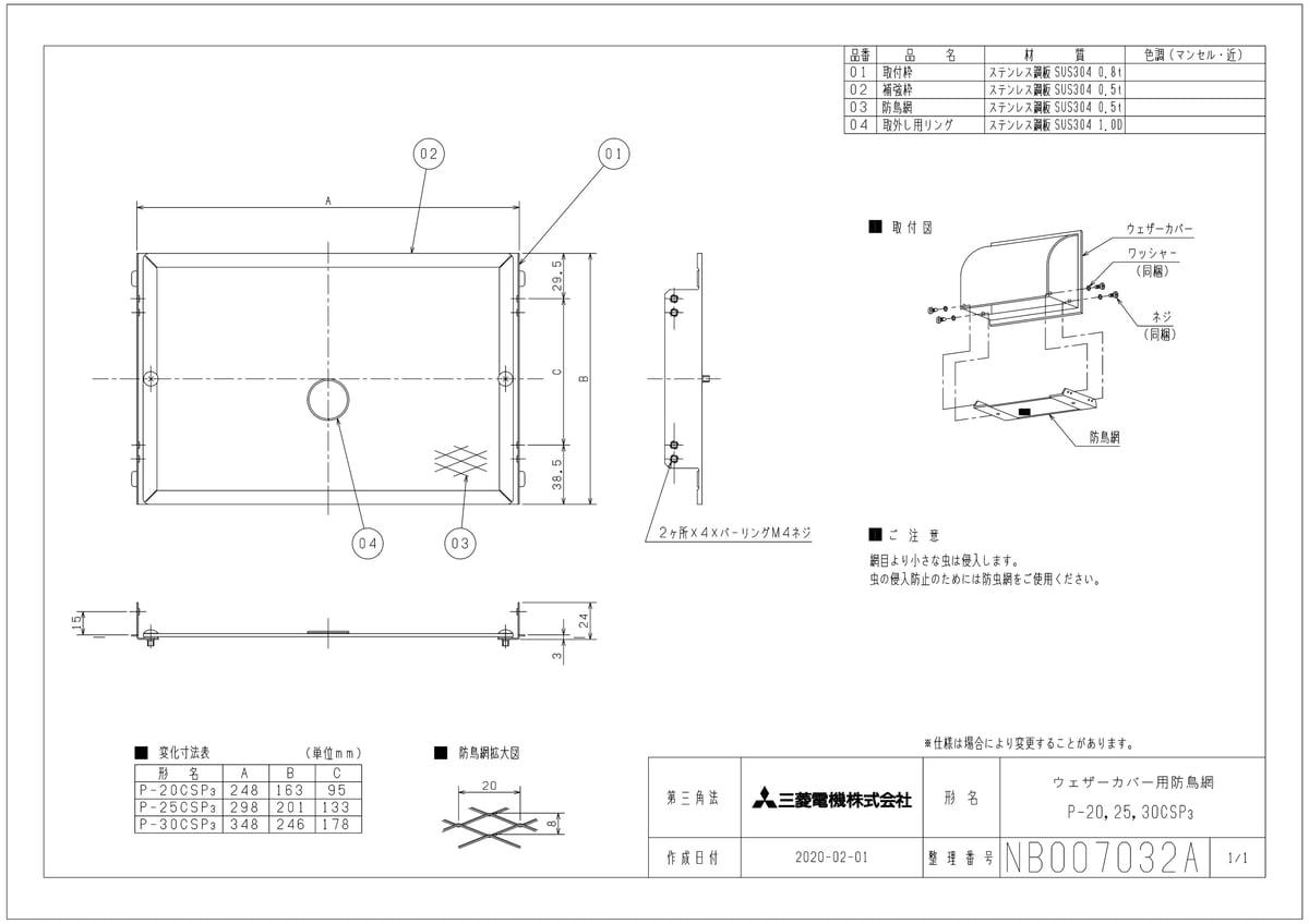 ウェザーカバー用防鳥網 ステンレス製
