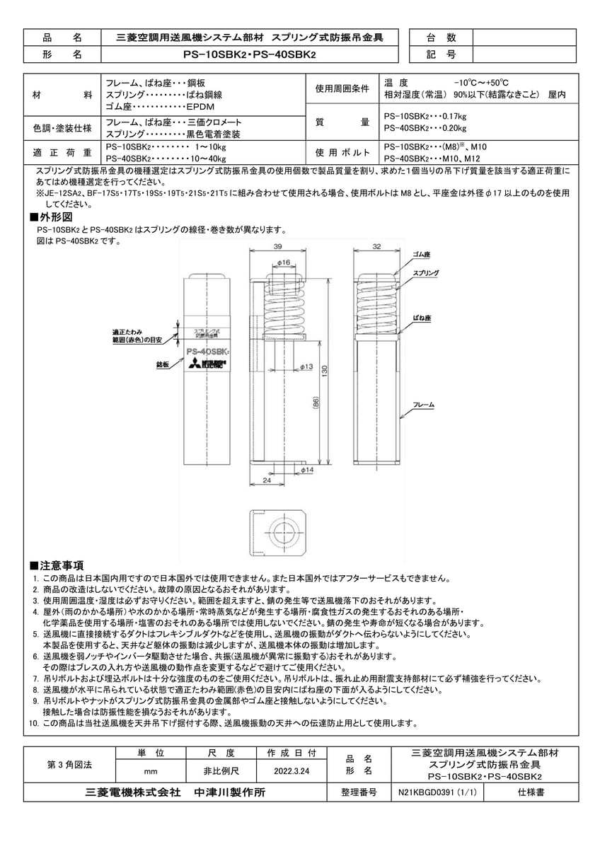産業用送風機 その他部材 スプリング式防振吊金具 4個入り
