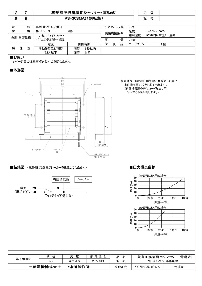 有圧換気扇用電動式鋼板製シャッター