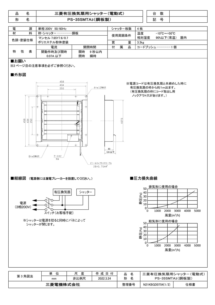 有圧換気扇用電動式鋼板製シャッター