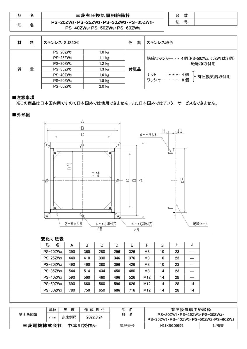 産業用送風機 有圧換気扇用部材 絶縁枠