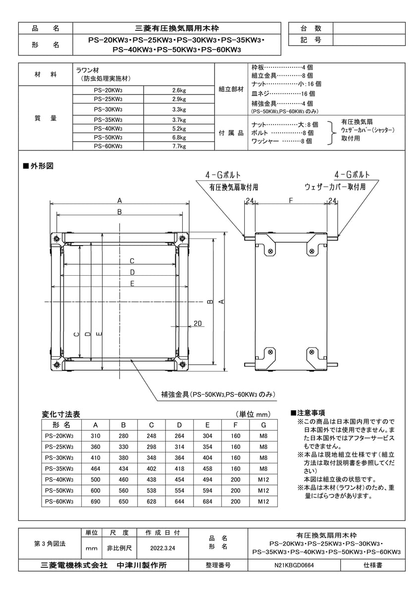産業用送風機 有圧換気扇用部材 有圧換気扇用木枠