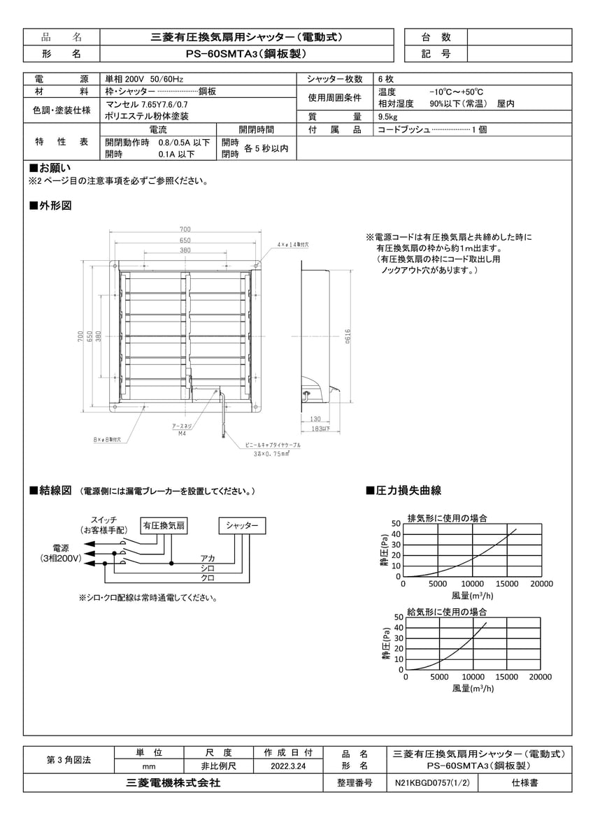 有圧換気扇用電動式鋼板製シャッター