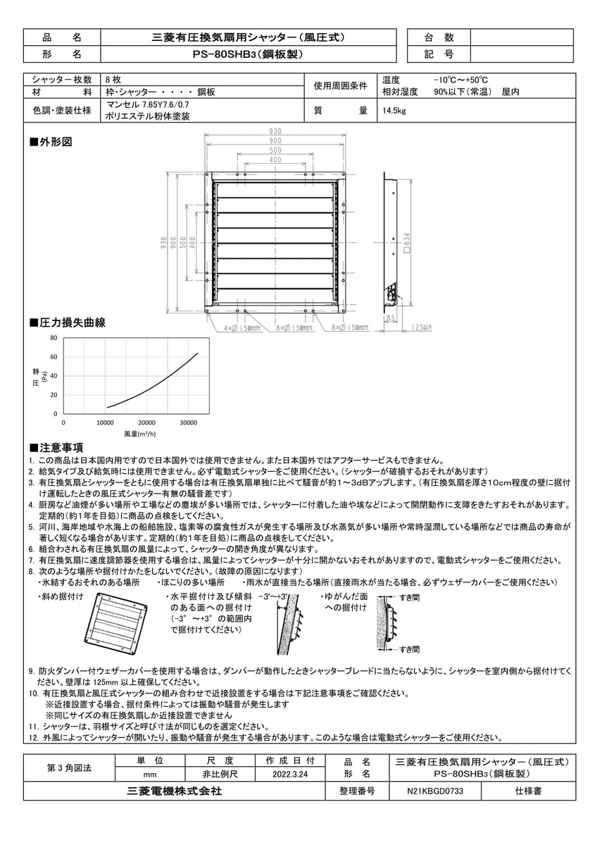 産業用送風機 有圧換気扇用部材 有圧換気扇用風圧式鋼板製シャッター
