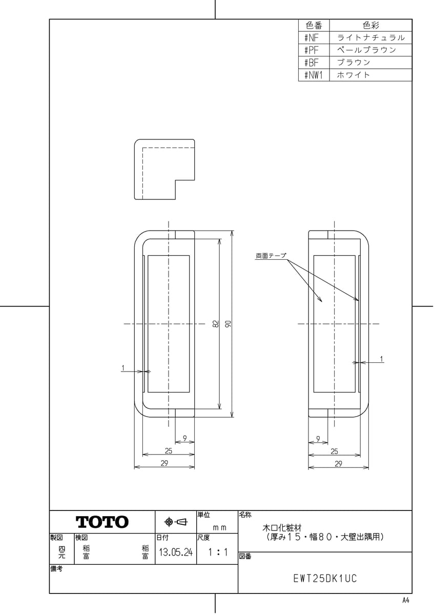 品名:木口化粧材(80幅15厚出隅)