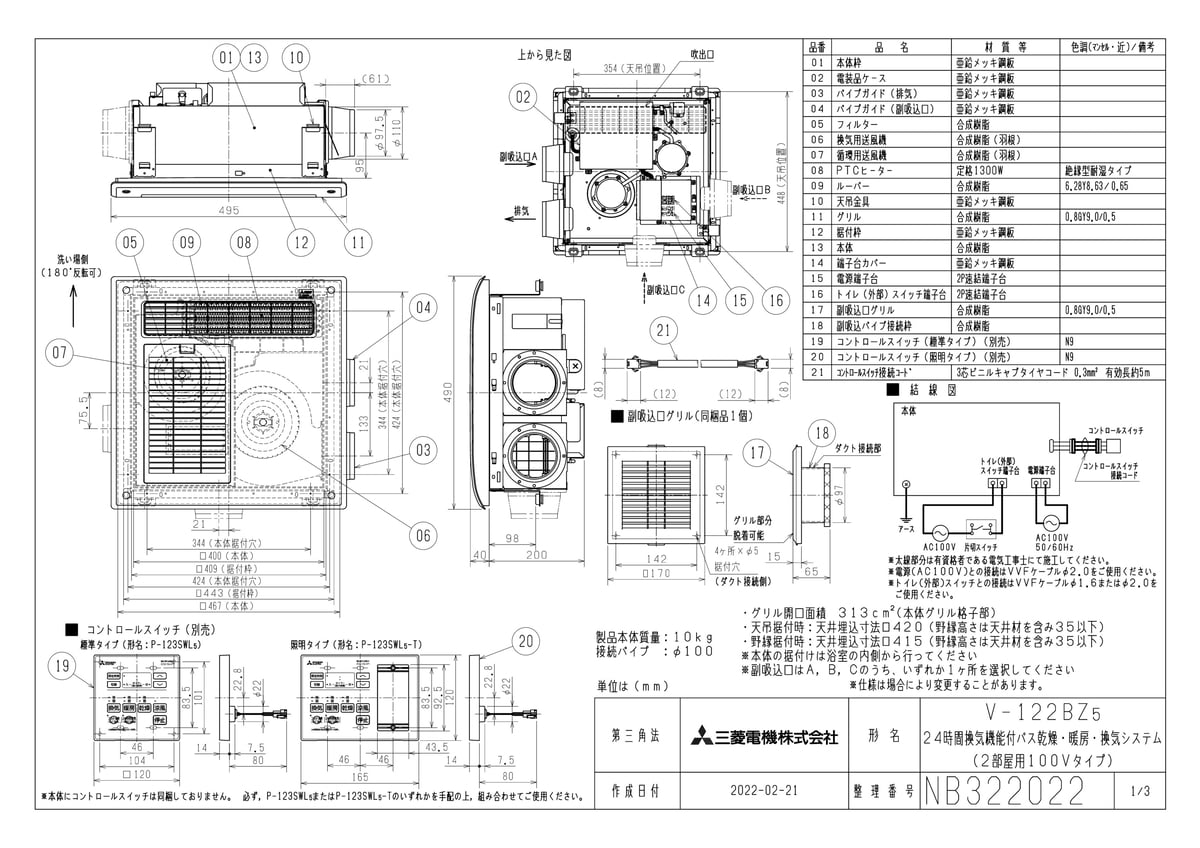 バス乾燥・暖房・換気システム 2部屋用タイプ