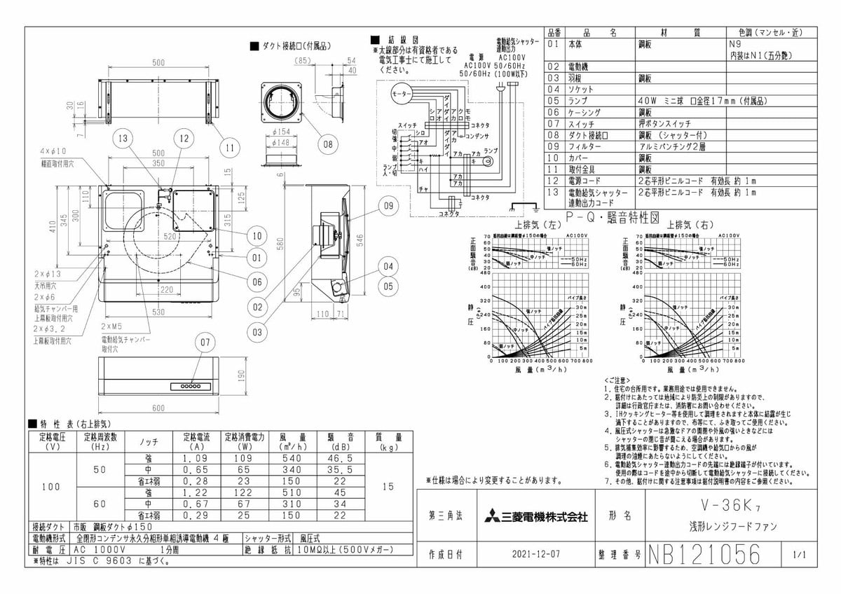 レンジフードファン浅形 高静圧 丸排気タイプ