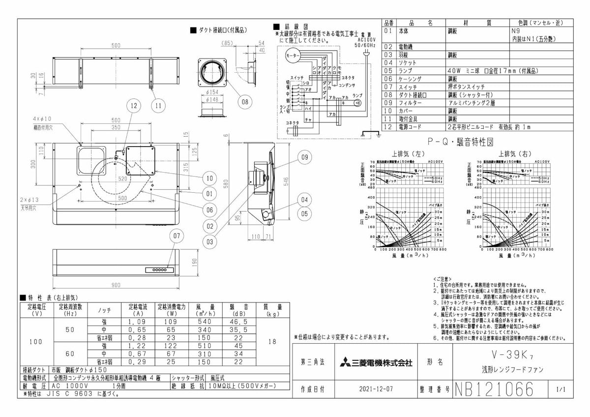 レンジフードファン浅形 高静圧 丸排気タイプ