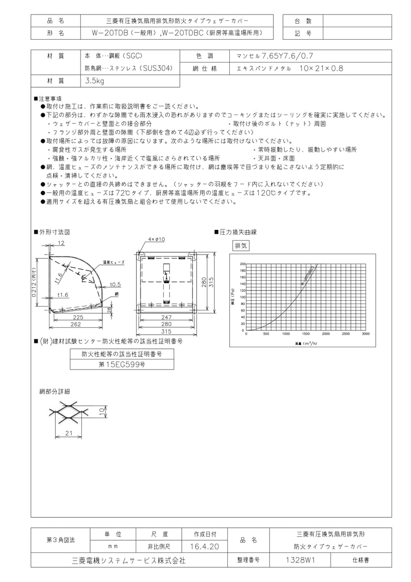 鋼板製ウェザーカバー 防火ダンパー・防鳥網付