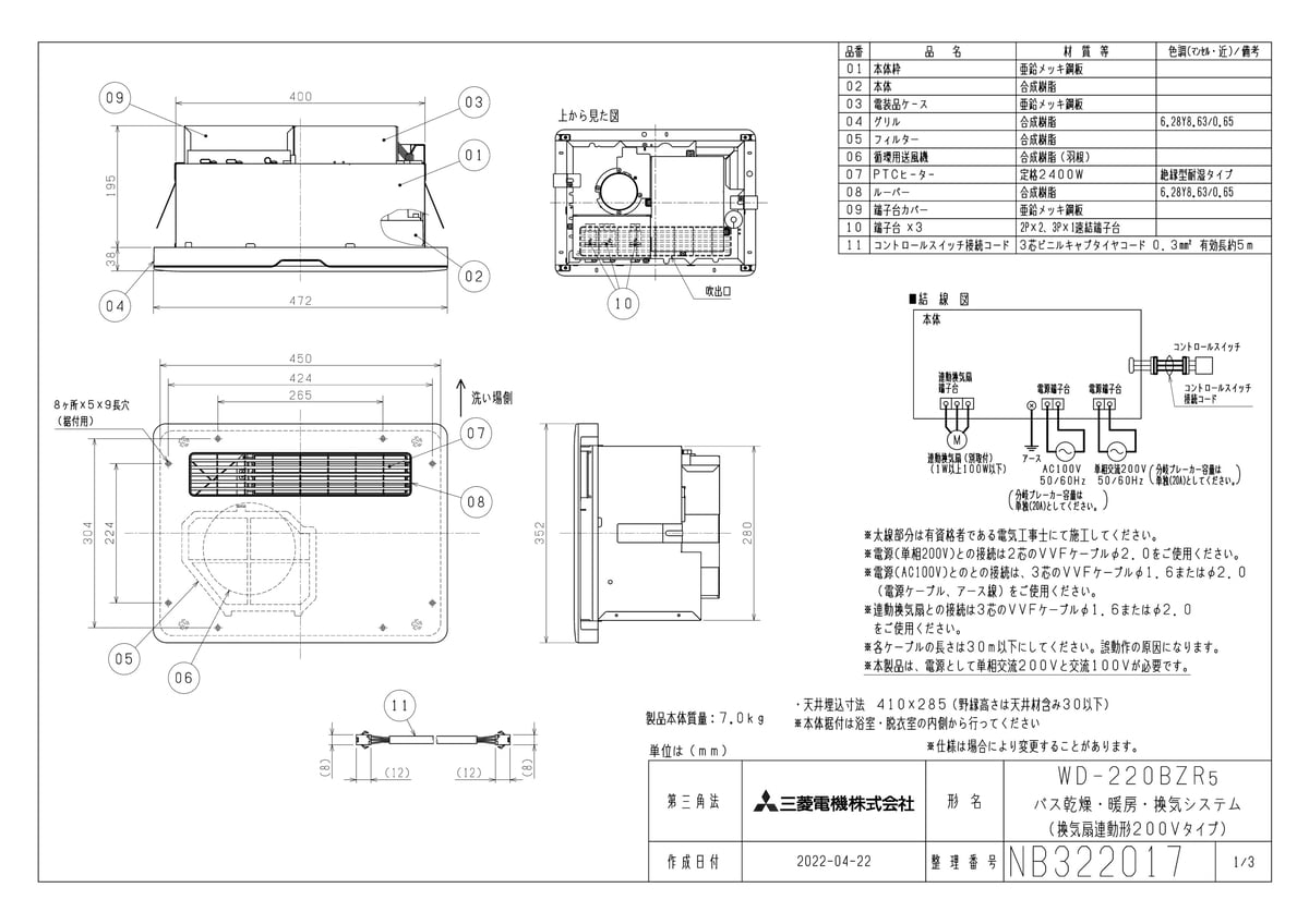 バス乾燥・暖房・換気システム 換気扇連動形