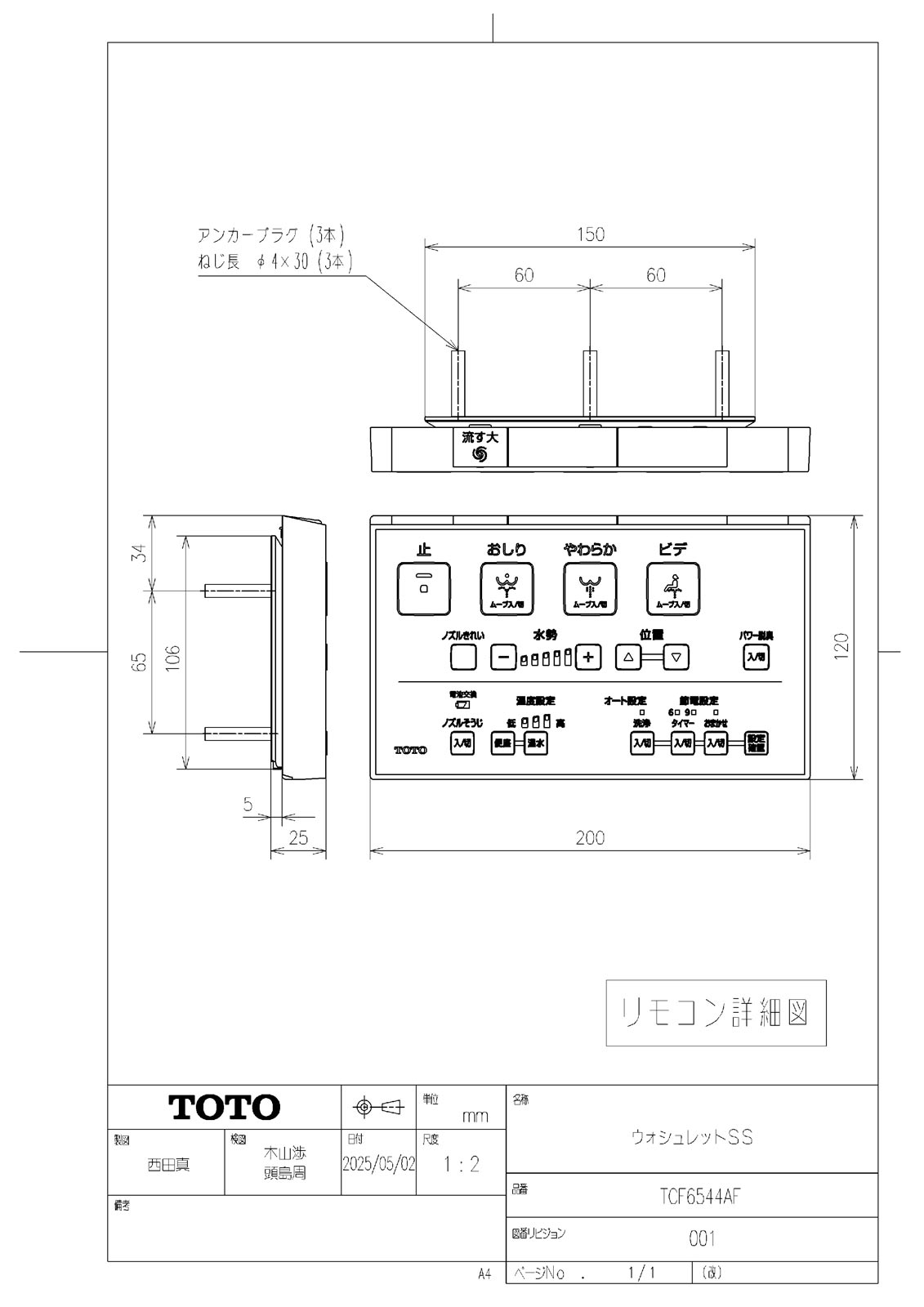 ウォシュレットSS 密結形便器用(前面左レバー) SS2A