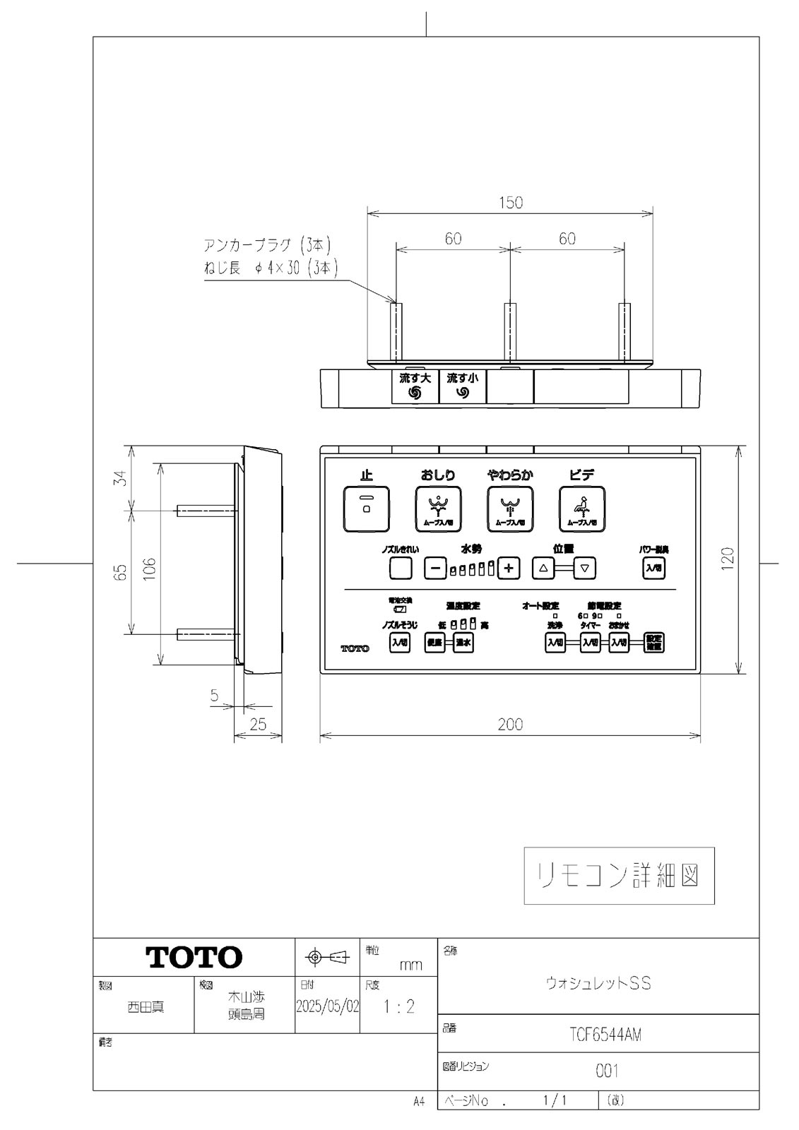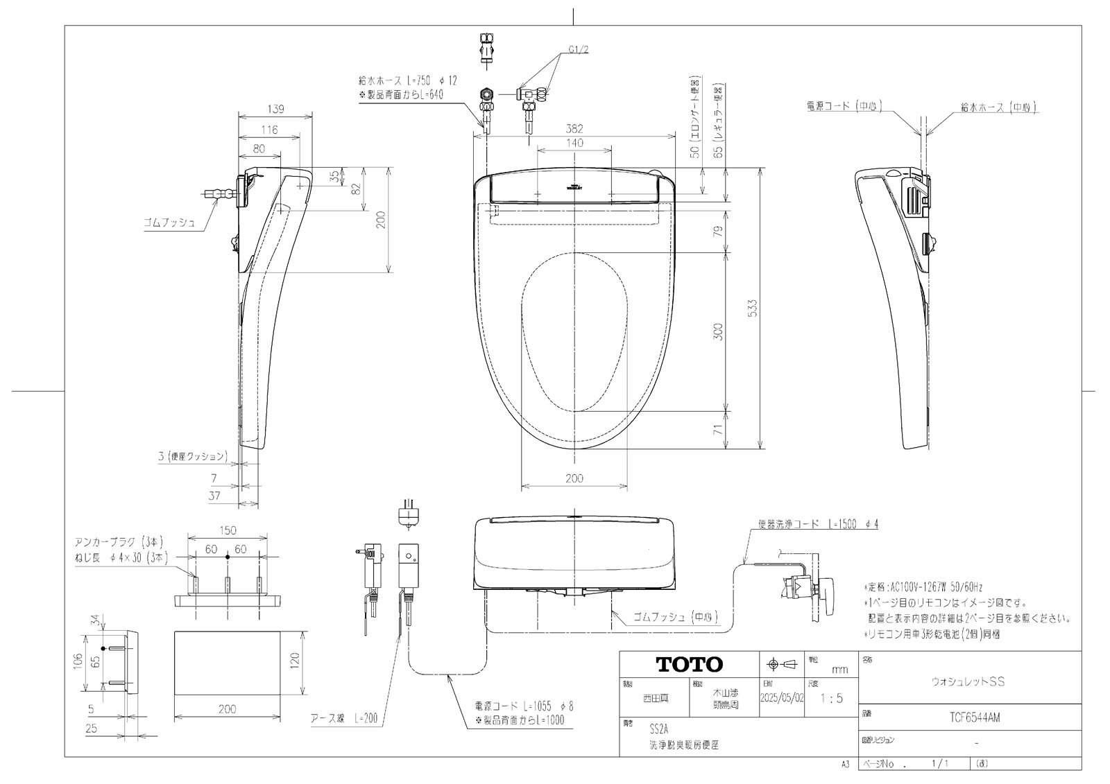 ウォシュレットSS 密結形便器用(右側面レバー) SS2A