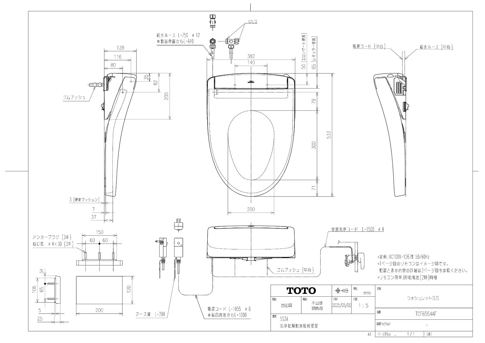 ウォシュレットSS 密結形便器用(前面左レバー) SS3A