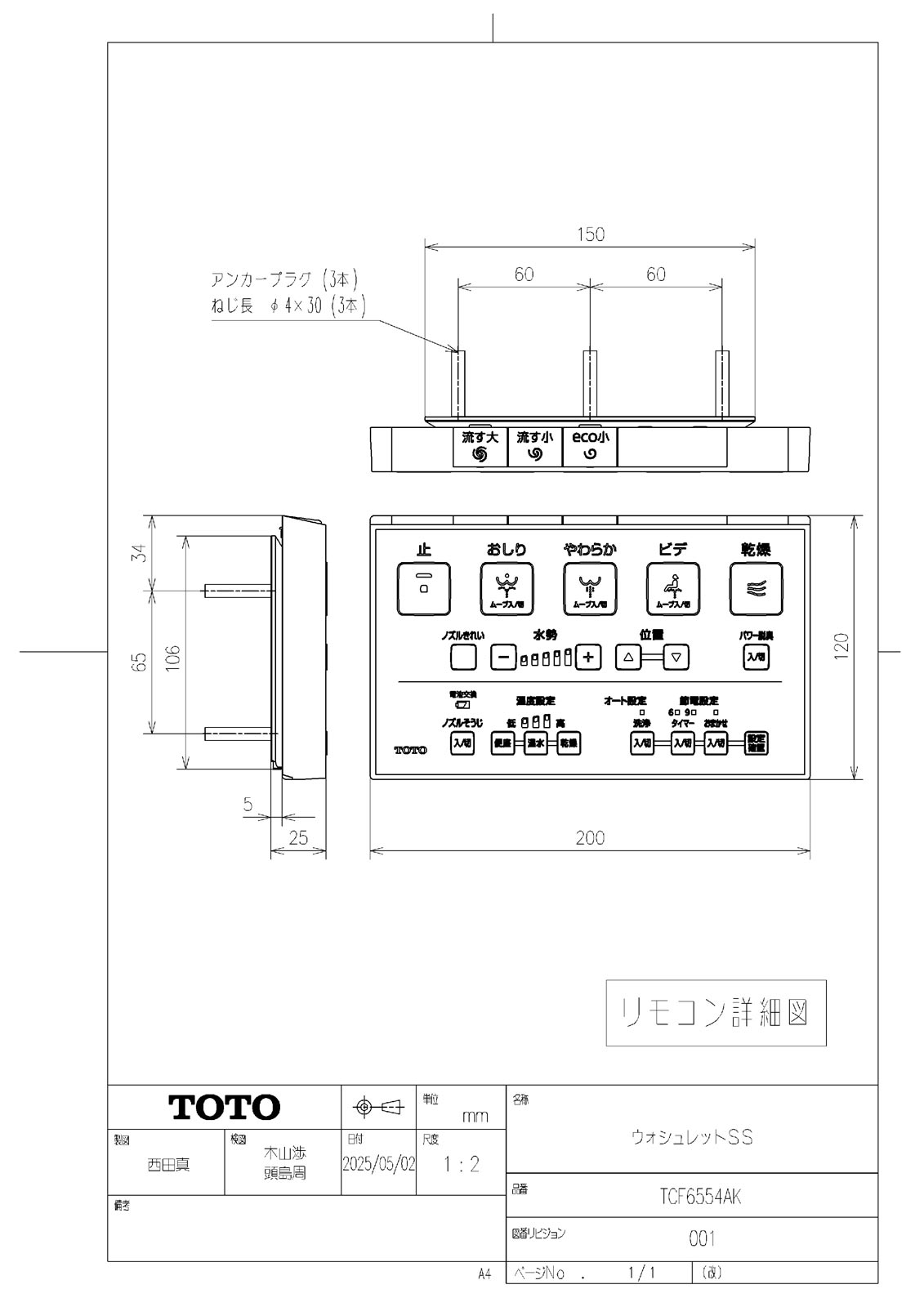 ウォシュレットSS 4.8L洗浄便器用(ピュアレストEX・QR・MR・CS597系) SS3A