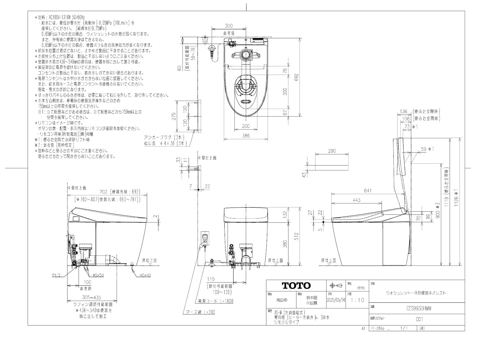 ネオレスト AS-W 寒冷地 床給水 床排水 リモデル対応305-540mm スティックリモコン