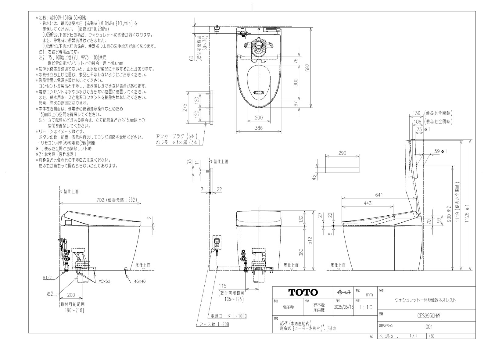 ネオレスト AS-W 寒冷地 床給水 床排水 200mm スティックリモコン