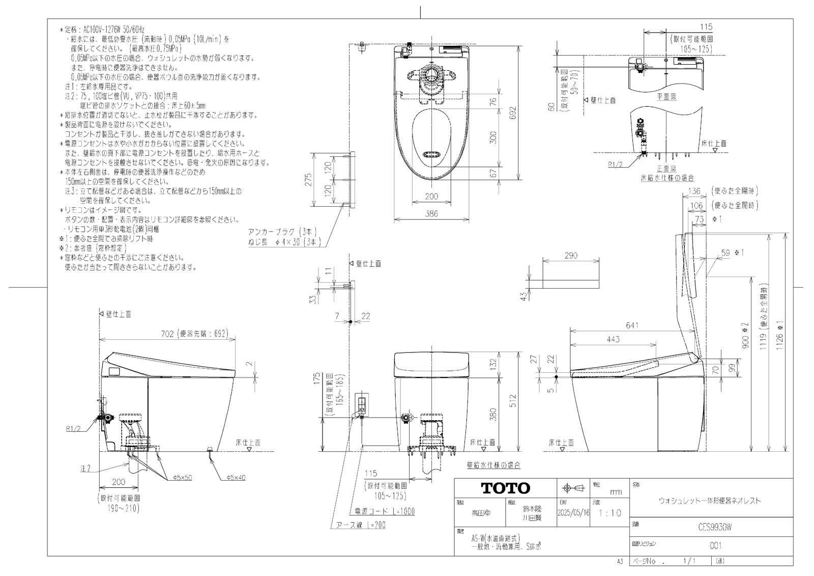 ネオレスト AS-W 一般地 壁床共通給水 床排水 200mm スティックリモコン