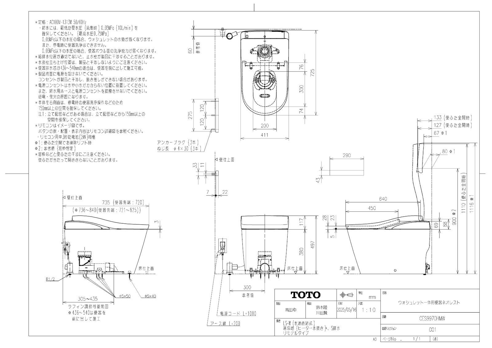 ネオレスト LS-W 寒冷地 床給水 床排水 リモデル対応305-540mm スティックリモコン