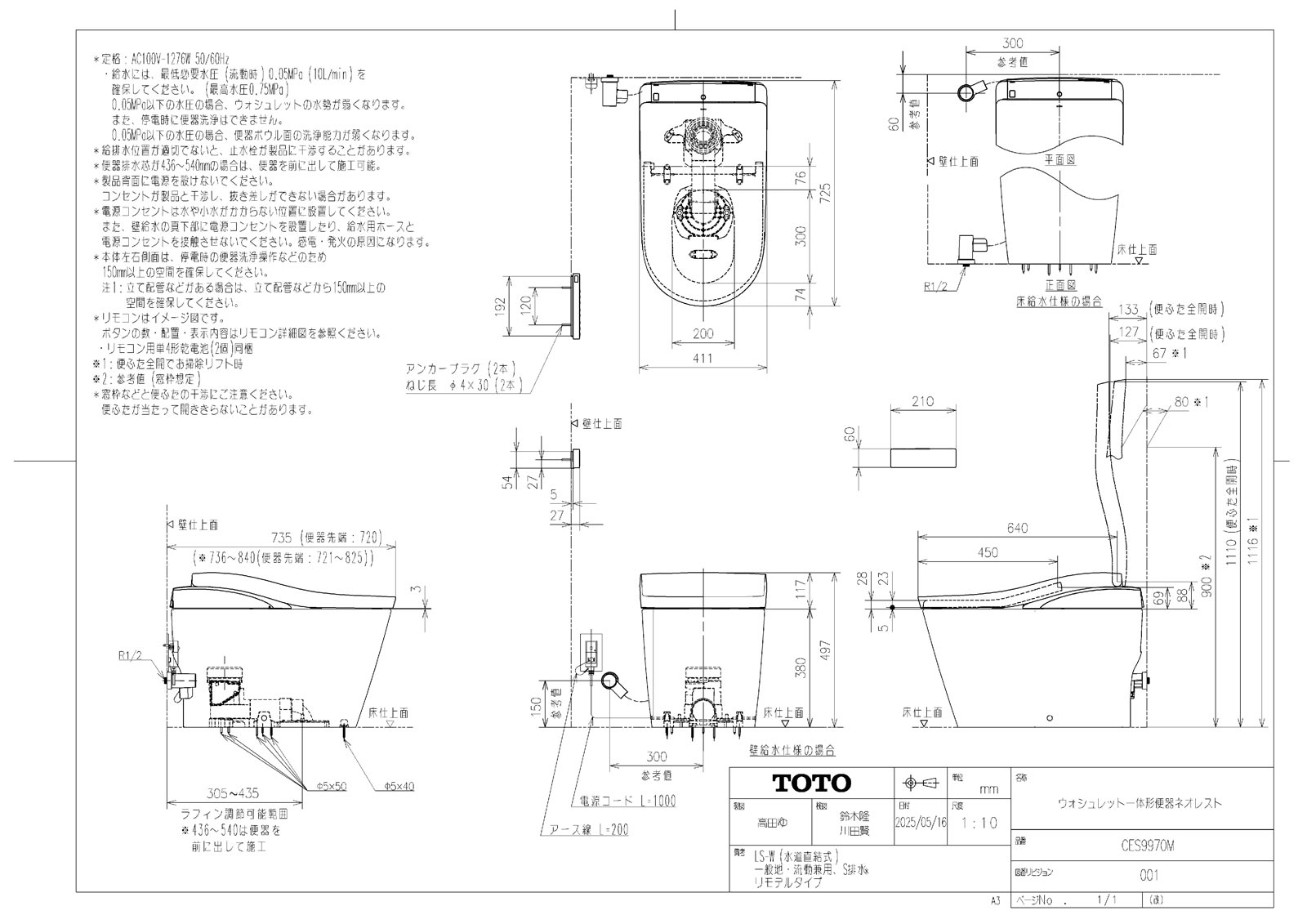 ネオレスト LS-W 一般地 壁床共通給水 床排水 リモデル対応305-540mm 標準リモコン