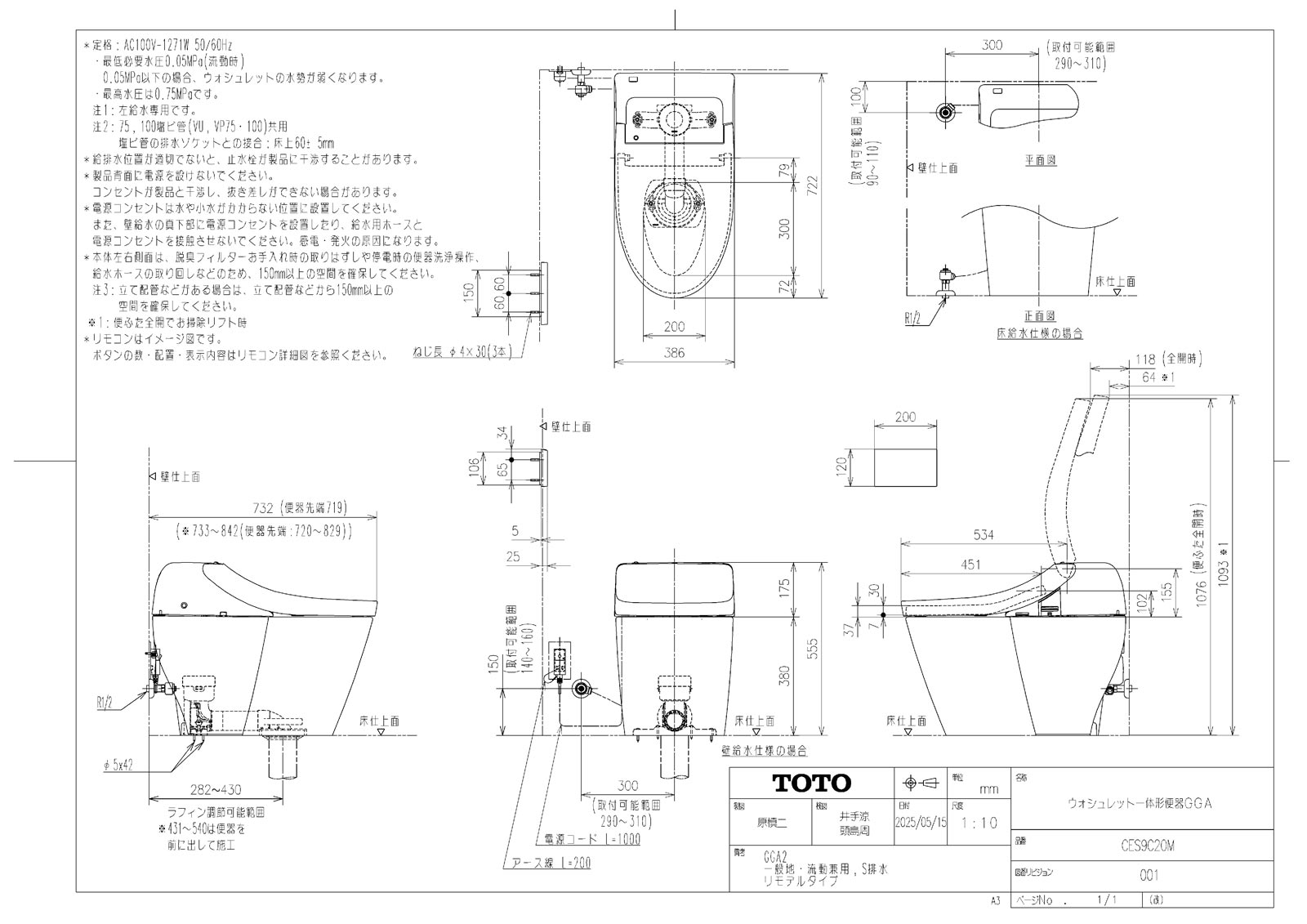 ウォシュレット一体形便器GGA2 一般地 壁床共通給水 床排水 リモデル対応