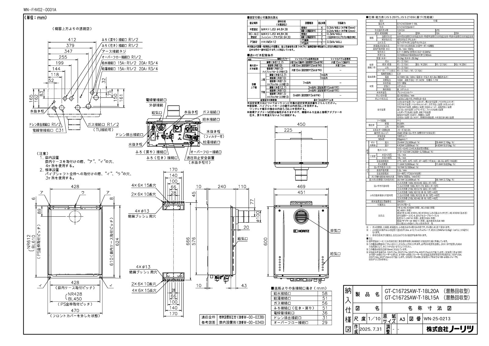 ガスふろ給湯器 16号 PS扉内前排気形 エコジョーズ オート BL認定品