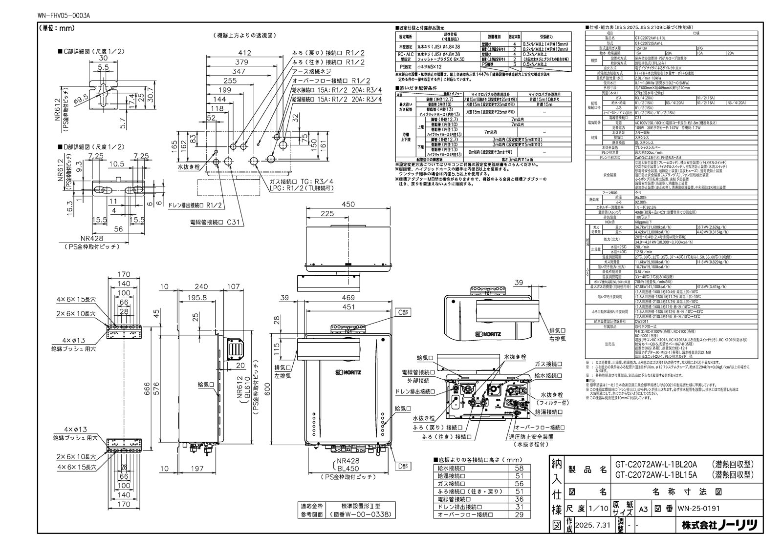 ガスふろ給湯暖房熱源機