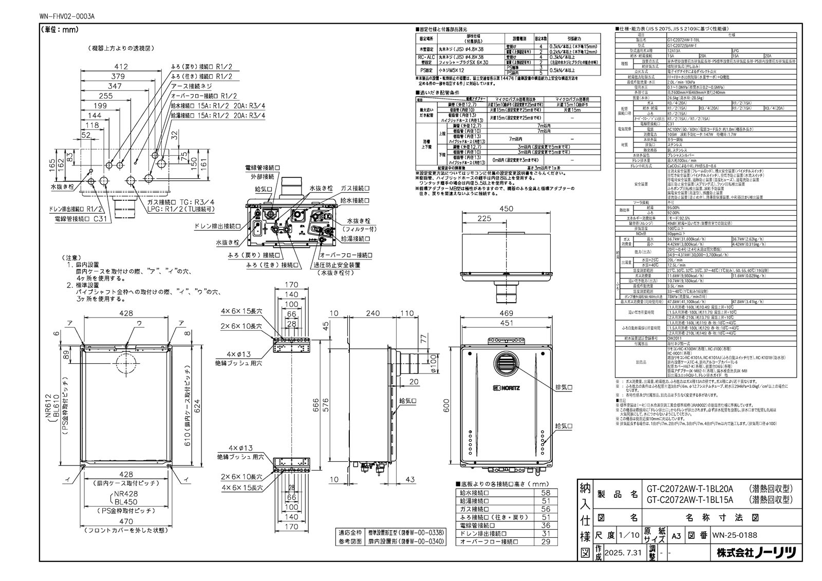 ガスふろ給湯暖房熱源機