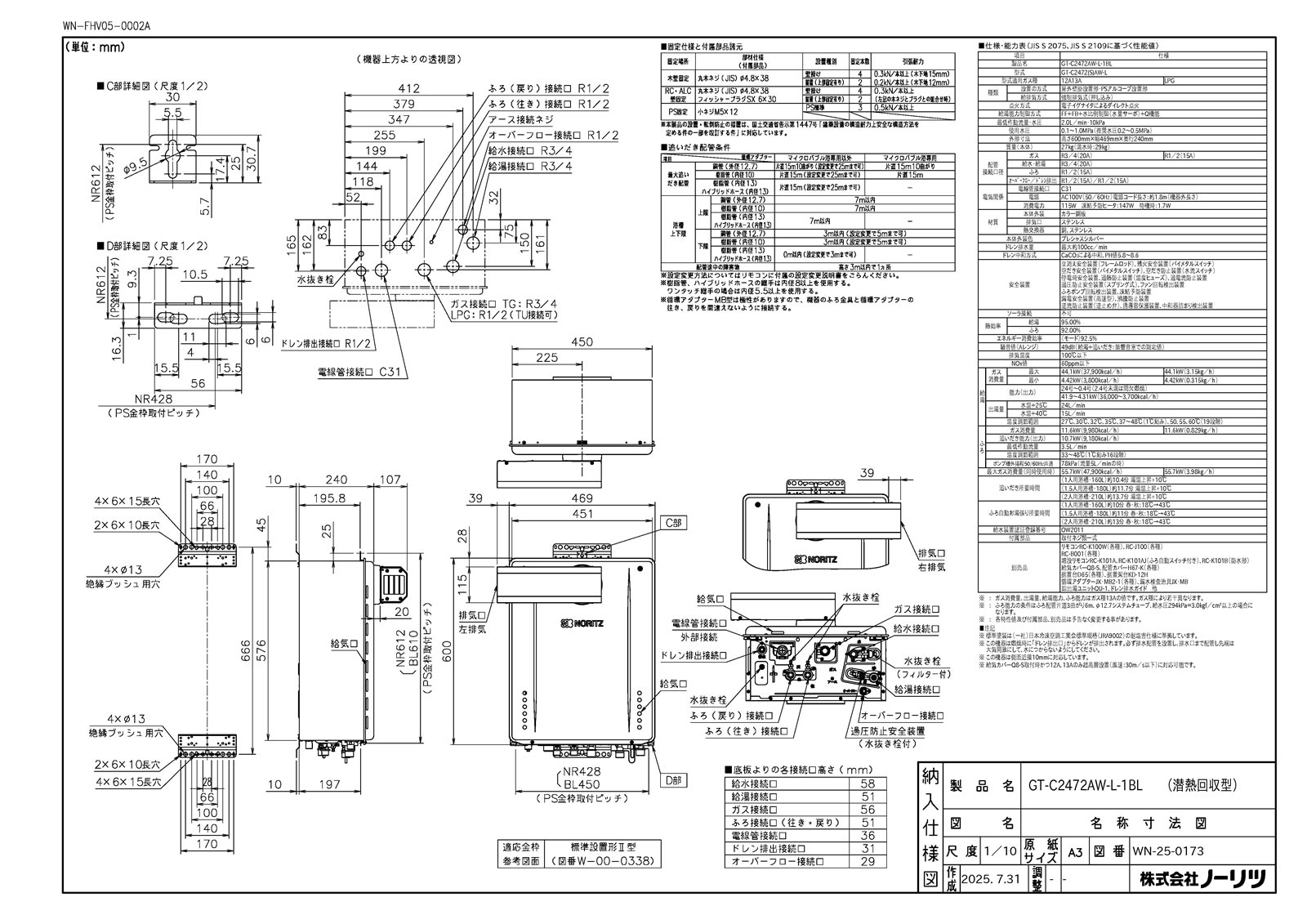 ガスふろ給湯暖房熱源機