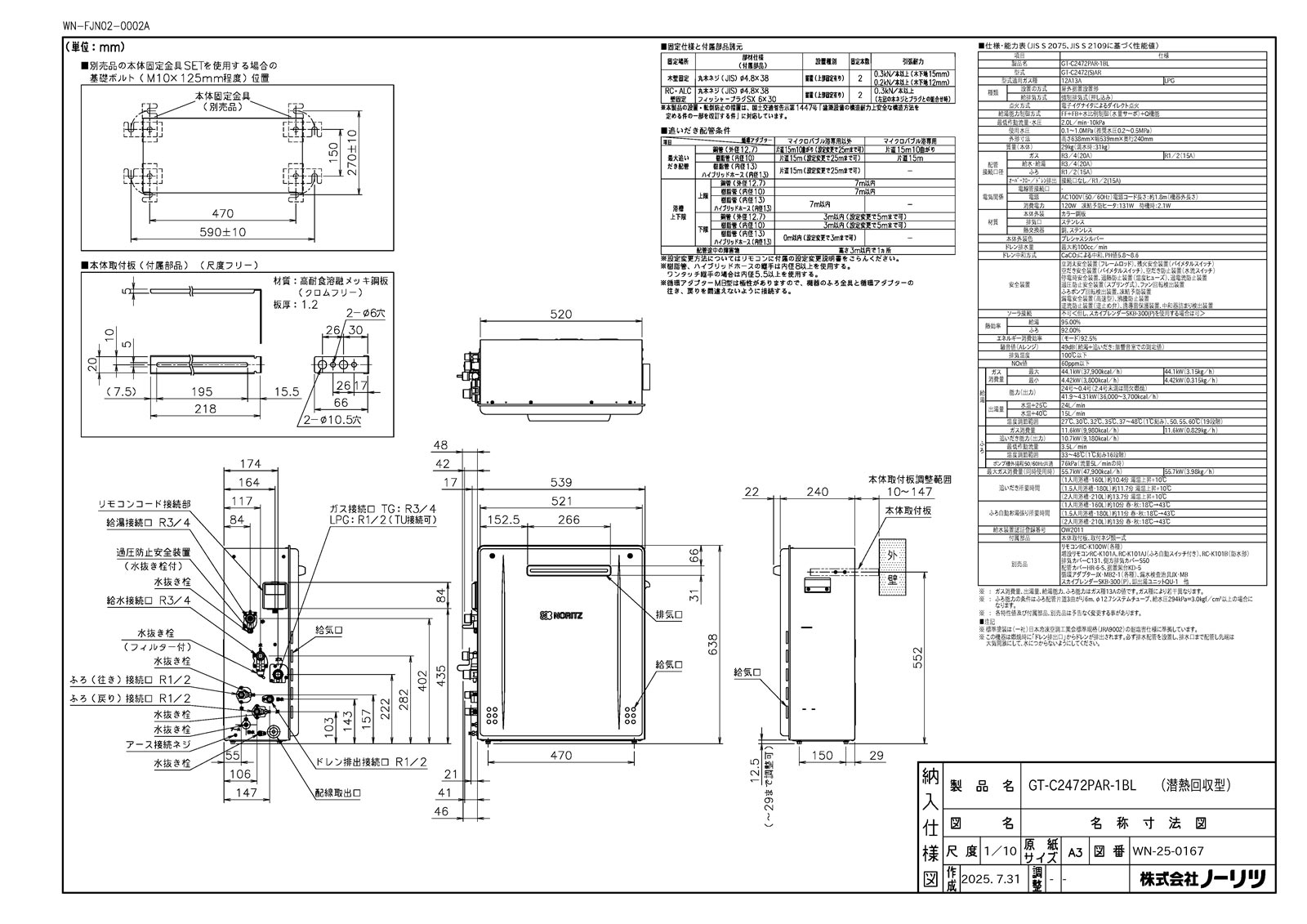 ガスふろ給湯器 24号 屋外据置型 エコジョーズ プレミアム フルオート BL認定品