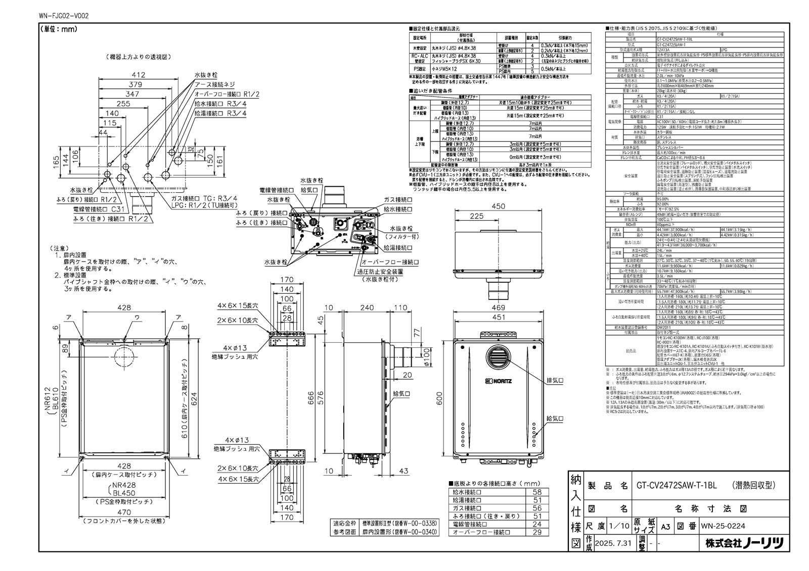 ガスふろ給湯器 三方弁方式 24号 PS扉内前排気型 エコジョーズ オート BL認定品