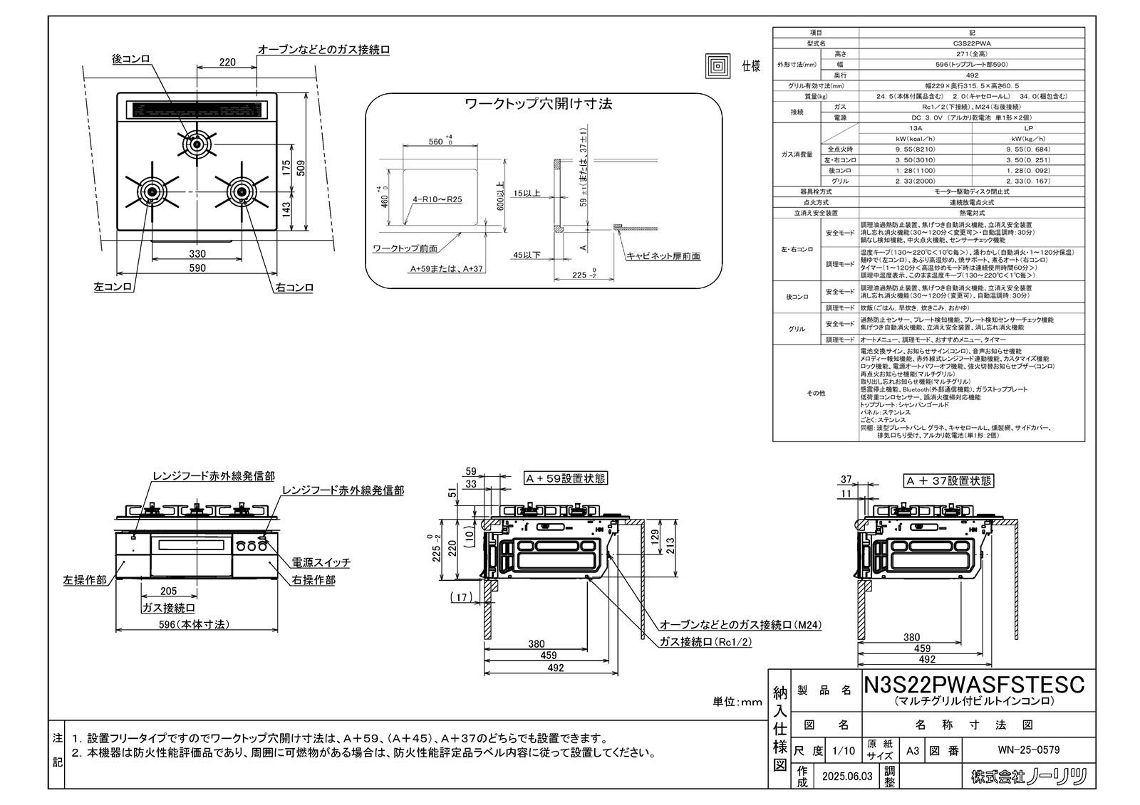 ビルトインコンロ プログレ 60cm FLAT シャンパンゴールドガラストップ