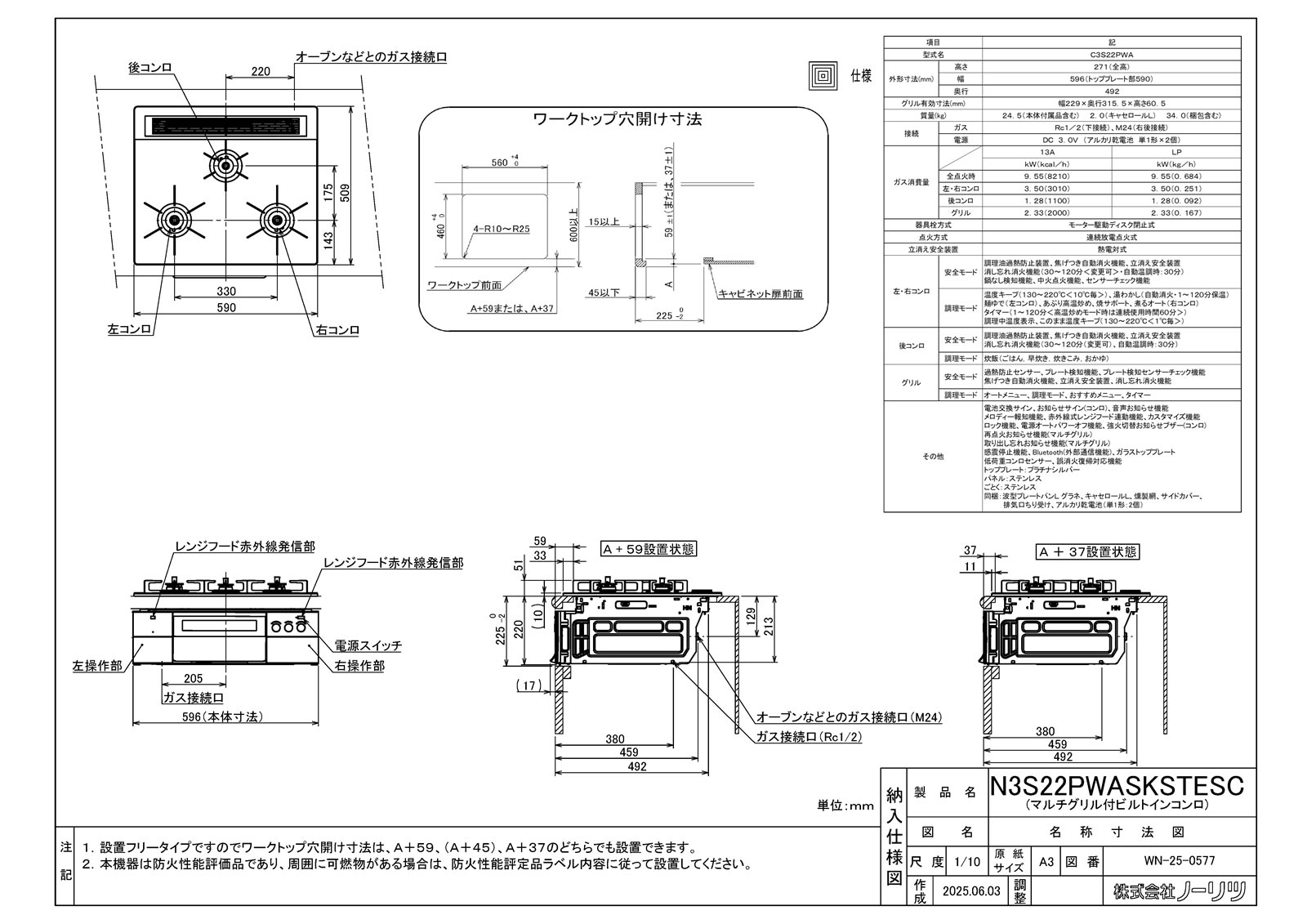 ビルトインコンロ