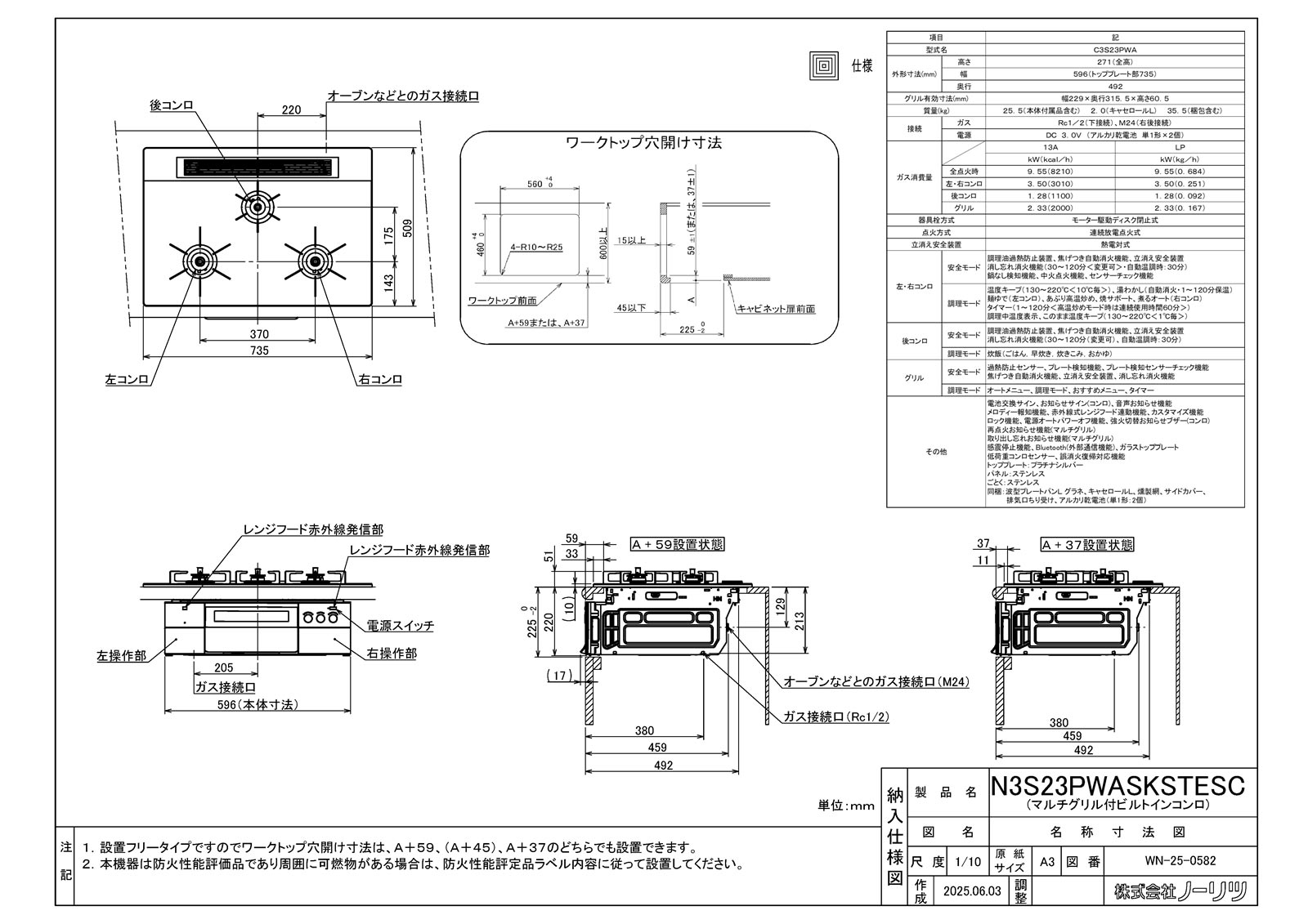ビルトインコンロ
